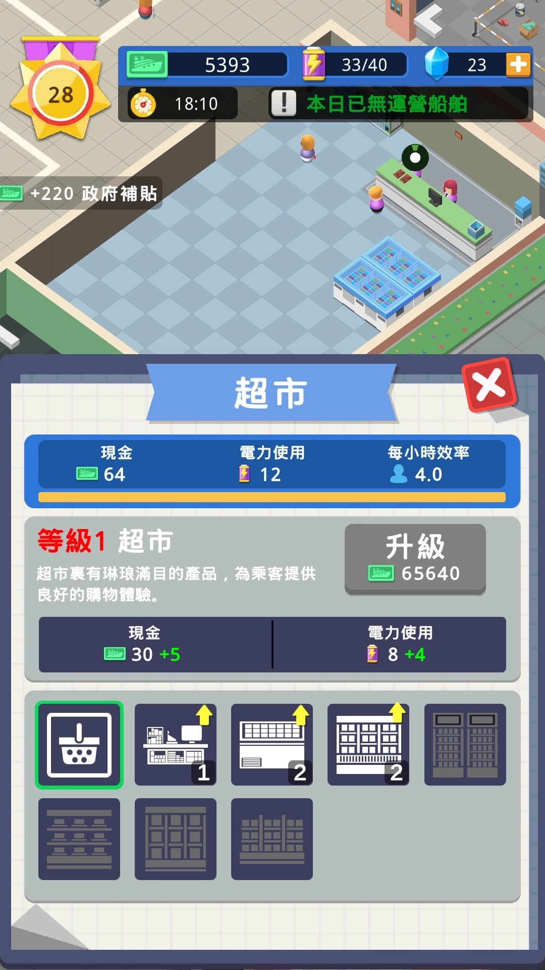 8、还能在等候大厅建造超市等设施,赚取更多资金。