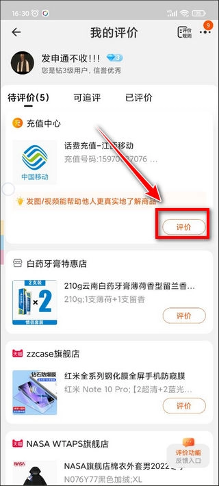 2、另外,如果你现在还有待评价的订单,也可以直接从待评价入口进入淘宝评价界面