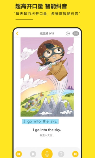 智能纠音功能会从发音和语速两个维度,对孩子的英语表达进行逐字逐句的打分与纠正,帮助孩子在英语学习过程中获得实时反馈。