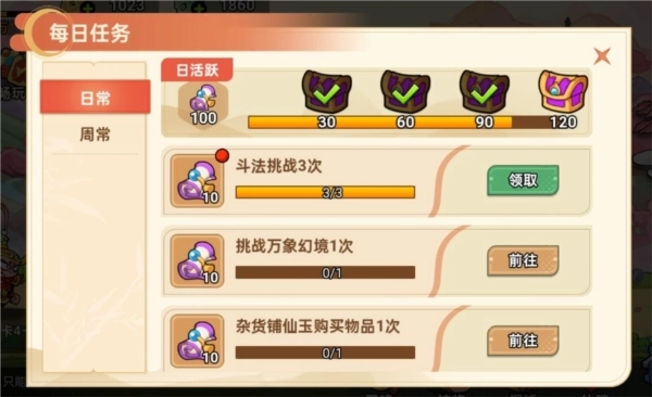 「每日任务和每周任务」