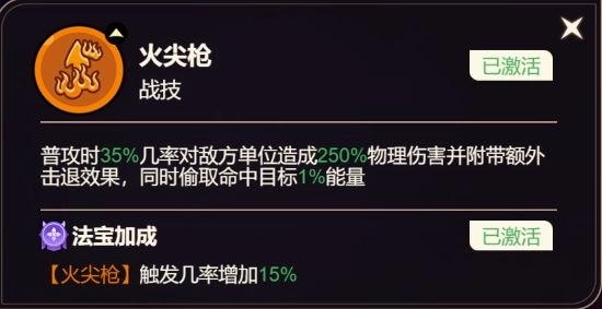 普攻时35%几率对敌方单位造成250%物理伤害并附带额外击退效果,同时偷取命中目标1%能量
