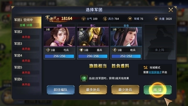 4、接着开始攻城,选择要上阵的将领;