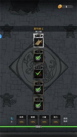 3、在关卡中遇到怪物时,游戏会自动进入战斗模式。击败怪物后,您将获得修为和金币,这些资源是提升角色实力的重要基础。