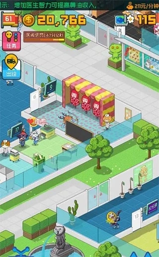 超脱力医院是一款以医院经营为核心的休闲模拟游戏,其主题剧情与人物形象的设计风格幽默且充满奇趣,用富有创意的方式呈现现实生活里的常见场景。在游戏中,玩家将化身一家精神病院的院长,目标是打造出能称霸银河系的顶尖精神病院。你需要一边升级诊室,一边密切留意不同病人的实际需求,通过满足他们的诉求来提高满意度,从而缩短治疗时长并增加收益。想体验各种无厘头的奇葩玩法吗?那就赶紧来本站试试超脱力医院吧!