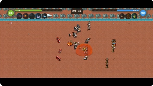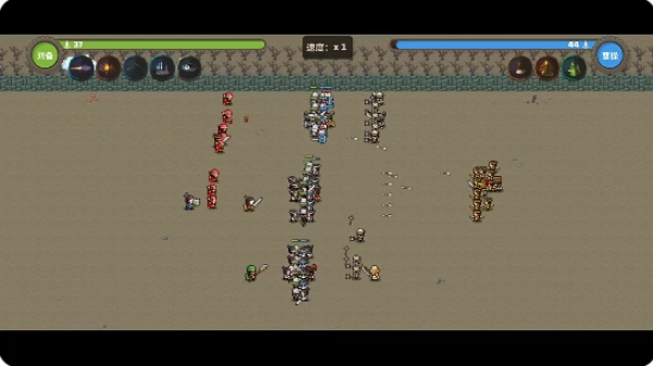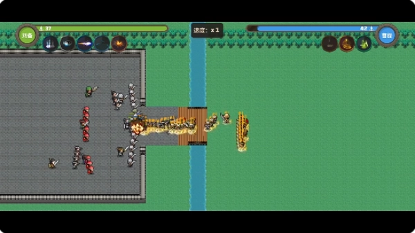 1、踏入游戏世界,呈现在眼前的是一片全新的战场,这里采用了像素风格的设计,双方的对战已然箭在弦上,一触即发。