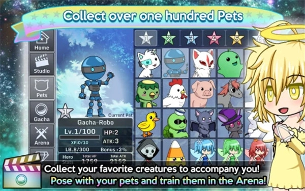 3、从一百多种背景里挑选,打造出理想的场景!还能收集扭蛋获取稀有宠物,在体育场训练它们,乐趣满满!现在就加入扭蛋工作室吧!灯光就位,相机准备,让我们开始行动!