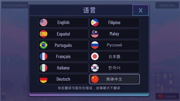 2、进入游戏后点击左下角可以更改游戏部分语言。