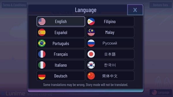 1、先安装游戏,安装完成后打开它,接着点击界面右下角的Language选项