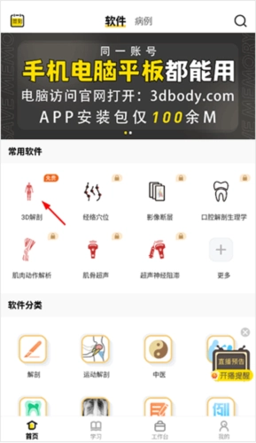 1、第一步,打开3dbody解剖软件,接着点击3d解剖。
