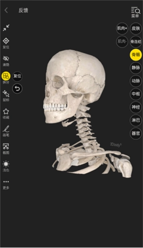 免费模块涵盖人体十二大解剖系统以及穴位,像骨骼、肌肉、心脏、脑部等均包含其中。其内容详实,全系三维操作,界面设计精美,内容具备专业性,操作体验良好。