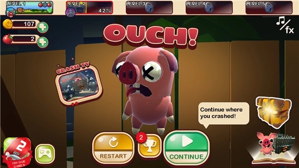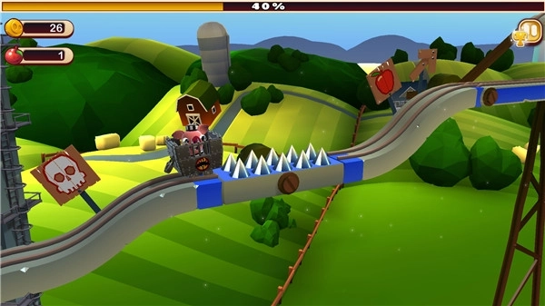 在这款游戏里,玩家会化身为一头即将被送往屠宰场的小猪,得绞尽脑汁设法逃脱,不然就会被加工成培根。游戏操作十分简便,只需点击屏幕切换火车轨道,就能帮助角色逃离险境。