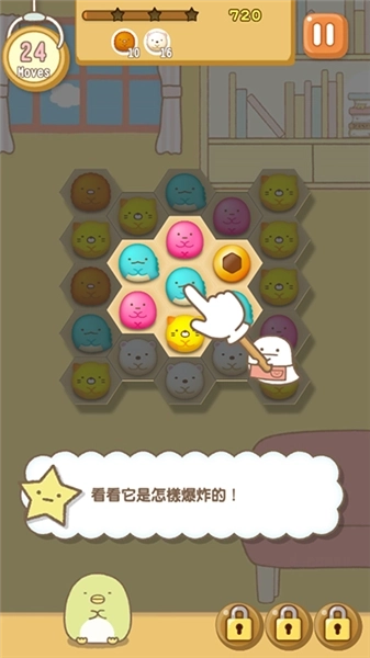 2、本作的基础消除是四连消(四个同色相连即可消除),格子由正方形改为六边形,这会改变连锁与掉落逻辑,带来更多组合可能。注意连消≥5个会生成强力特殊方块,合理运用能一口气清大面积或触发连锁进化。