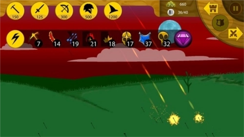 我们只有两种兵种,矿工和棍棒手,矿工可以通过开采矿石的方式来为我们带来经济,不过要注意的是,矿工是非常脆弱且会被敌方攻击的,所以一定要造一些士兵来保卫他们。