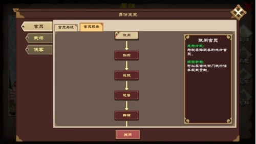 品级和职务是两个不同的分支内容,政绩的内容会提高贡献度,从而晋升官品;但职务的获得除了需要对应的官品以外,还需要派系中的影响力,才可以得到。不进行派系玩法,最高也只可成为知府,后续都要靠朝廷其他成员的帮助才可以晋升到噢。