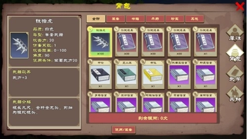 在成为书生后院长会赠送三本书籍、这三本书籍可以在自宅里的书房把熟练度读满,因为这是官员最重要的战斗手段(论战),获取任何物品之后都需要点击左上角的人物背包进行装备