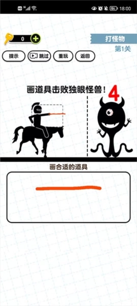 4、这是一场纯粹的划线闯关。你能够画出各式各样的武器,以此来抵御怪物的进攻。