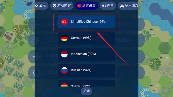 1、进入游戏之后首先选择语言,找到中文语言点击。