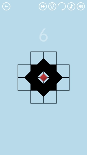 6、第6关首先转动中间四个方格,使其拼成白色小菱形,这样就能获得红宝石。之后再转动所有方格,拼成大菱形,点击即可通关。