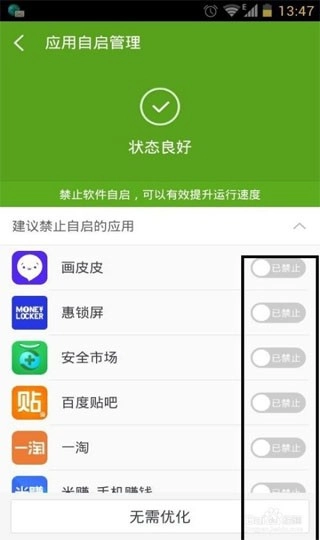 之后就会展示出所有默认在后台自动启动的软件。能看到这里有14款软件开机时自动启动,手机出现卡顿的情况也就不难理解了!