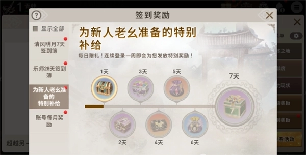 进游戏以后,先把所有新手签到的领取了。
