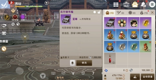 跳级后回到游戏,先别急着做主线任务。可以先打开背包,用箱子领取银币。