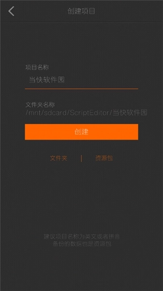 2、填写项目名称和文件夹名称。