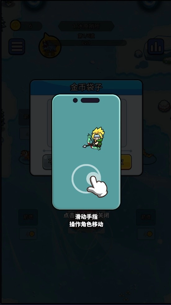 1、滑动手指,操作角色进行移动。