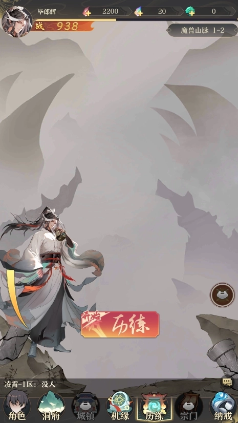 3、然后进入历练界面开始打怪赚取灵石用于突破