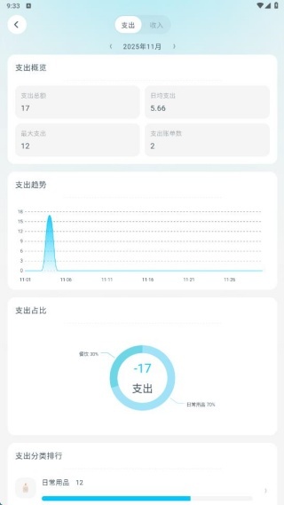 4、账目添加后,可在统计页面查看,这样能更直观地汇总每日的账目信息。