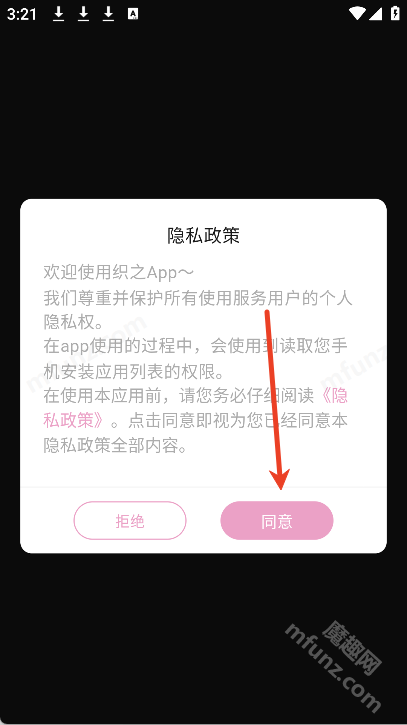1、打开织之点击同意