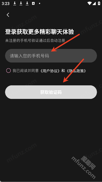3、输入手机号和验证码登录账号