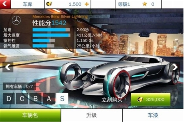 在《狂野飙车8:极速凌云》这款游戏里,奔驰旗下有一款名为SilverArrow(也叫SilverLightning)的概念车,它是一辆既充满科幻气息又具备超强性能的虚拟赛车。