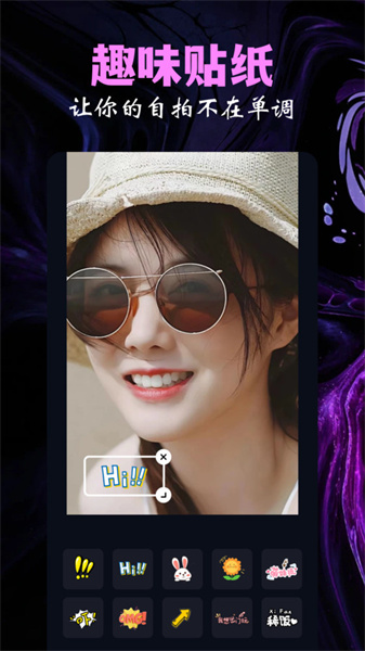 3、配备丰富实用的美颜功能,让自拍效果更出众,还有多样的贴纸与边框可供挑选,为您的作品增添更多创意与趣味。