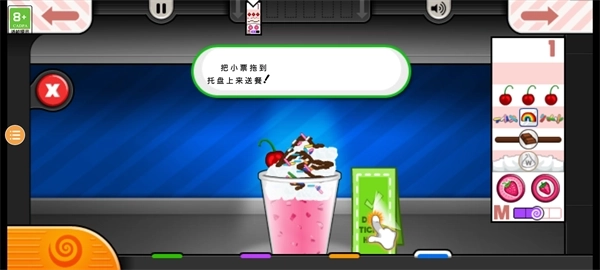 2、解锁食材和配方,制作出各种口味独特的果汁,并将其卖给顾客。