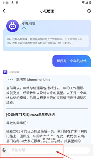 4、点击小旺助理,输入问题内容软件会快速生成解答