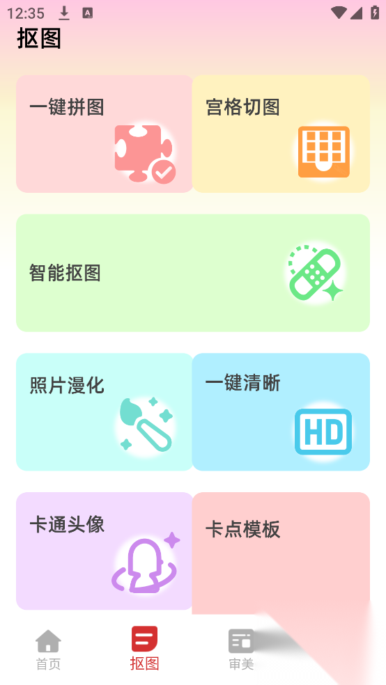 2、进入首页后,能看到各类丰富功能,点击页面下方的【抠图】按钮即可进入对应功能界面。