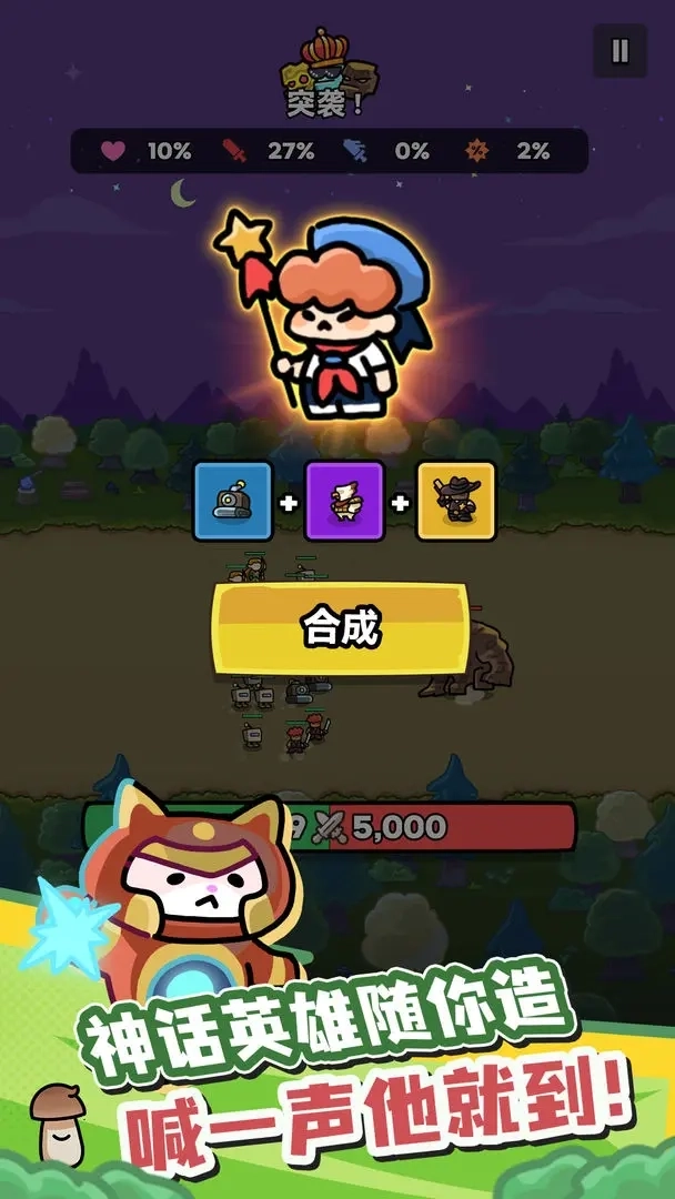 合成英雄,创造神话!体验他们无与伦比的力量!