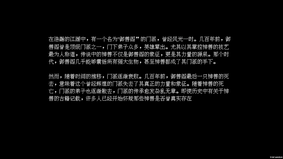 《江湖黄老六》是一款像素风武侠游戏,玩家将踏入一个满是神秘色彩与江湖传说的武侠世界,亲身感受曾经盛极一时的门派“御兽阁”的起落沉浮。在这片开放的江湖天地里,游戏团队精心打造了一个复杂且极具吸引力的背景设定,呈现出御兽阁在巅峰时期对各类强大生物甚至神兽的掌控能力。