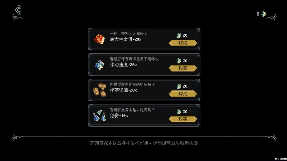 5、玩家可以在药剂师这里购买各种增益药剂。
