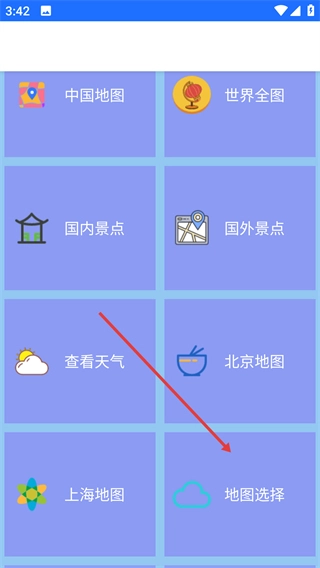 1、点击【地图选择】选项,进入地图选择页面。