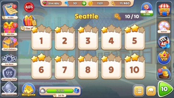 在这款美国烹饪主题的游戏里,您能够挑战并完成五百多个关卡。