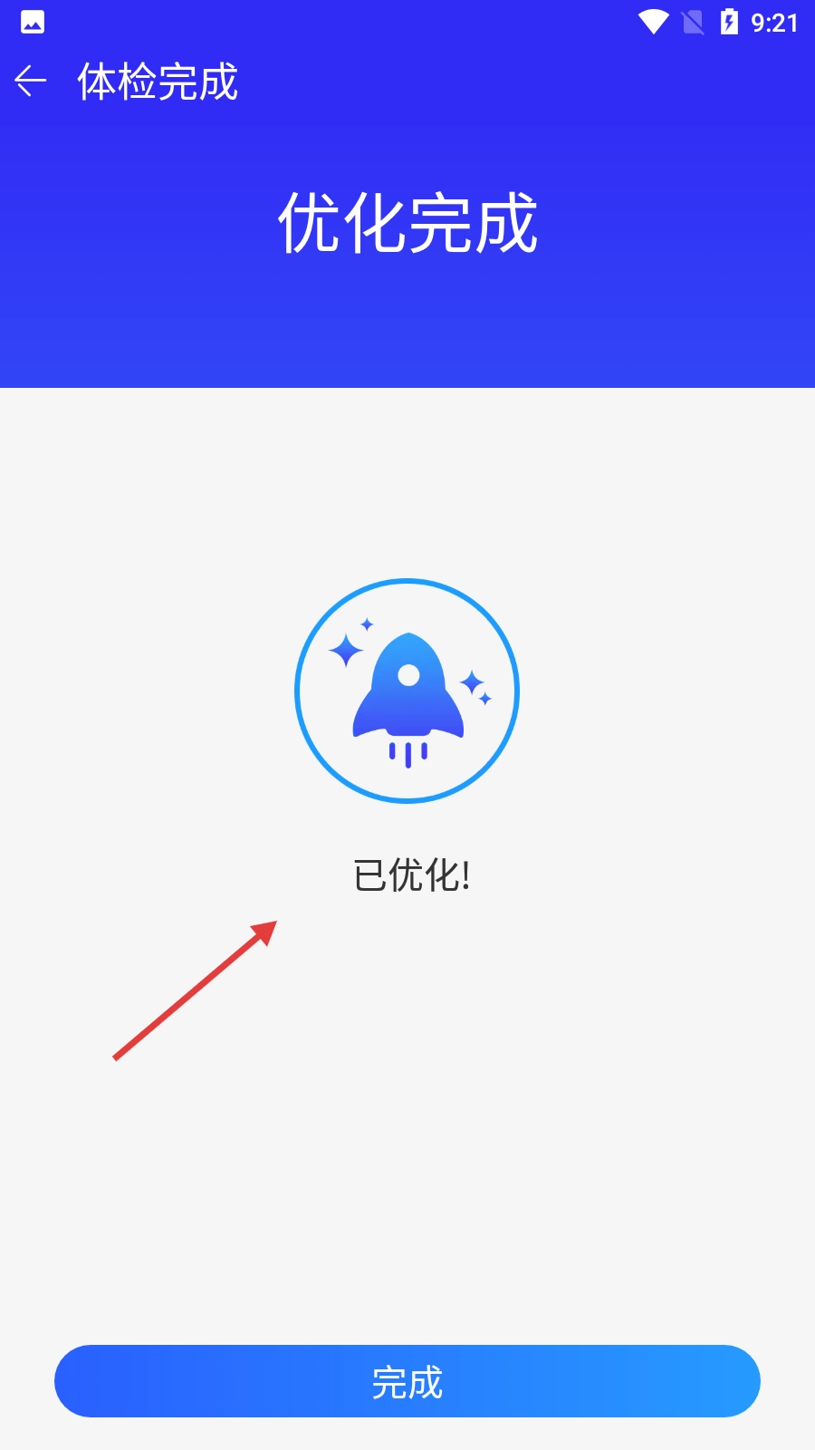 4、检测结束后,界面会呈现【优化完成-已优化!】的提示,点击【完成】按钮就能结束此次手机体检优化流程。
