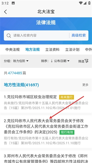 3、在地方法规列表中选择目标法规。