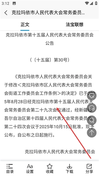 4、进入法规详情页面后,浏览法规正文内容,即完成法规查询操作。