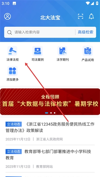 1、点击【法律法规】选项,进入法律法规页面。