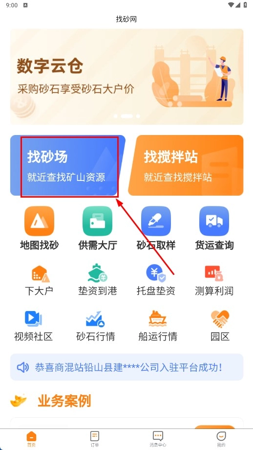 1、点击【找砂场-功能按钮】,进入找砂场页面。