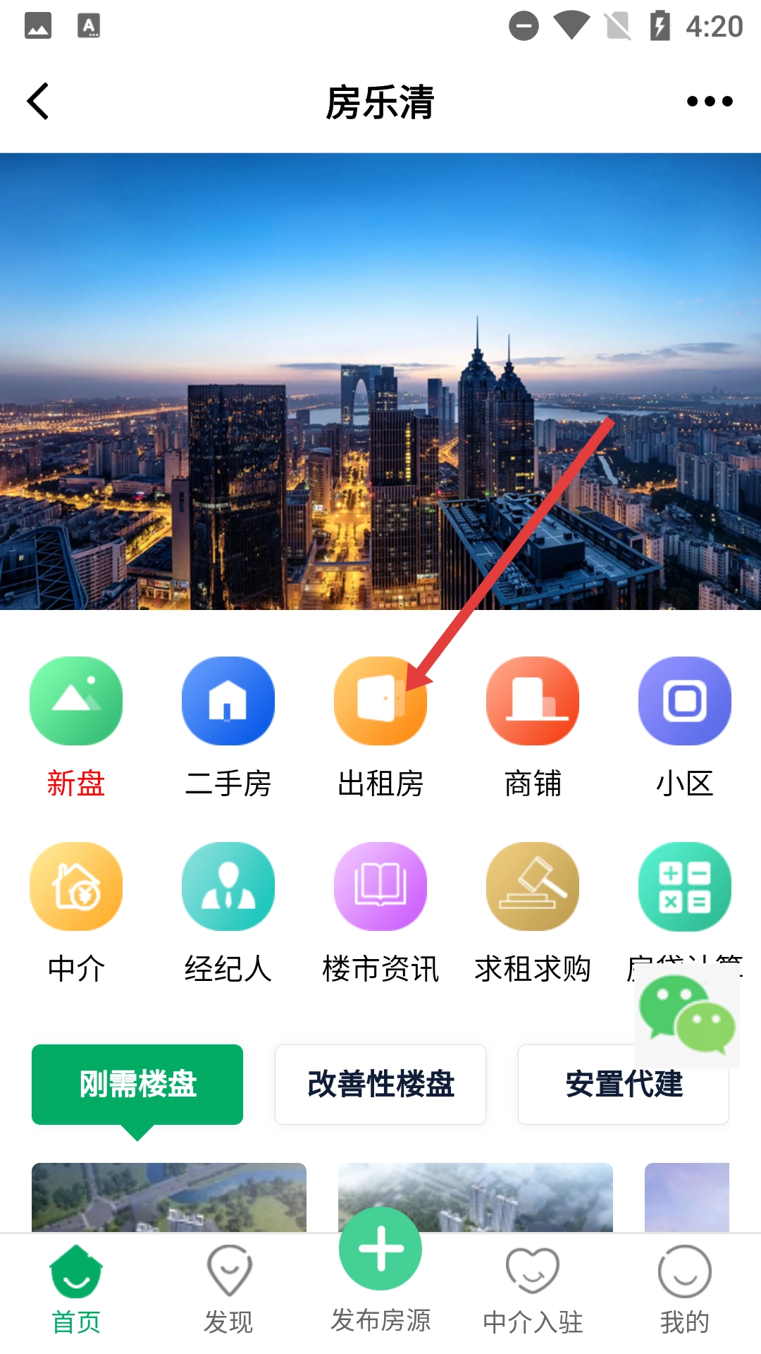 1、在大虹桥首页找到并点击【房乐清】选项,即可进入房产服务板块,在该板块中能够查看新盘、二手房、出租房等各类房产分类信息。