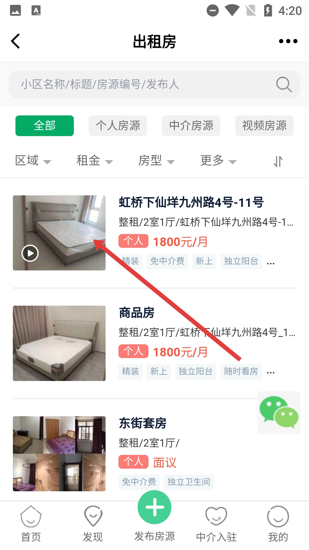 3、在出租房列表页面找到目标房源并点击,进入该房源的详情页面后,就能查看包括租金、房型、面积在内的房源相关信息。