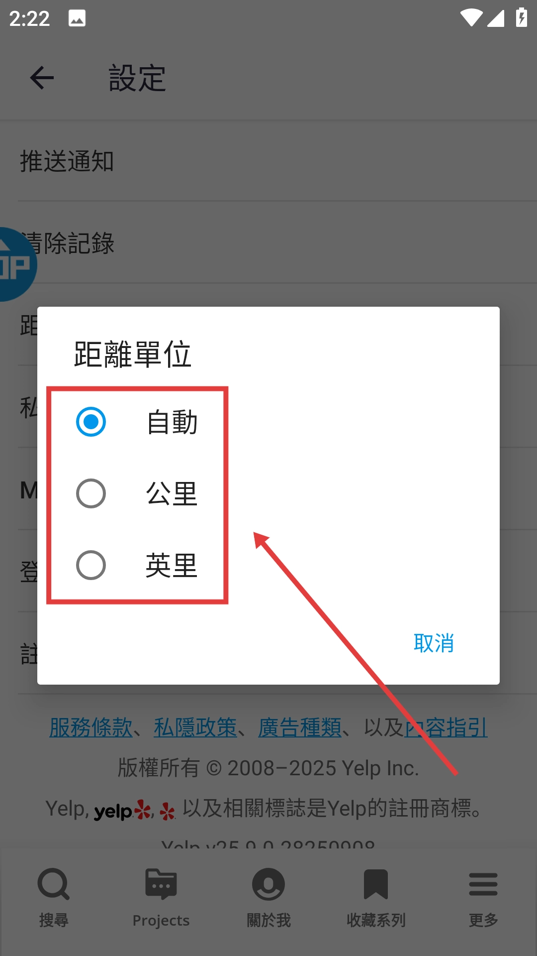 3、在设置页面点击【距离单位】选项,弹出距离单位选择对话框。