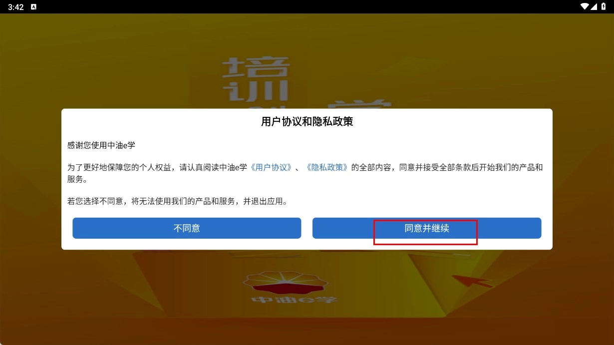 1、点击【同意并继续】功能按钮,以同意用户协议与隐私政策。